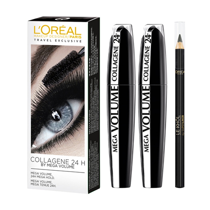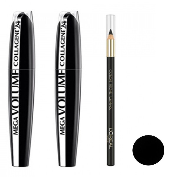 ریمل لورال Loreal مدل Mega Volume Collagen 24 بسته 2 عددی به همراه مداد چشم